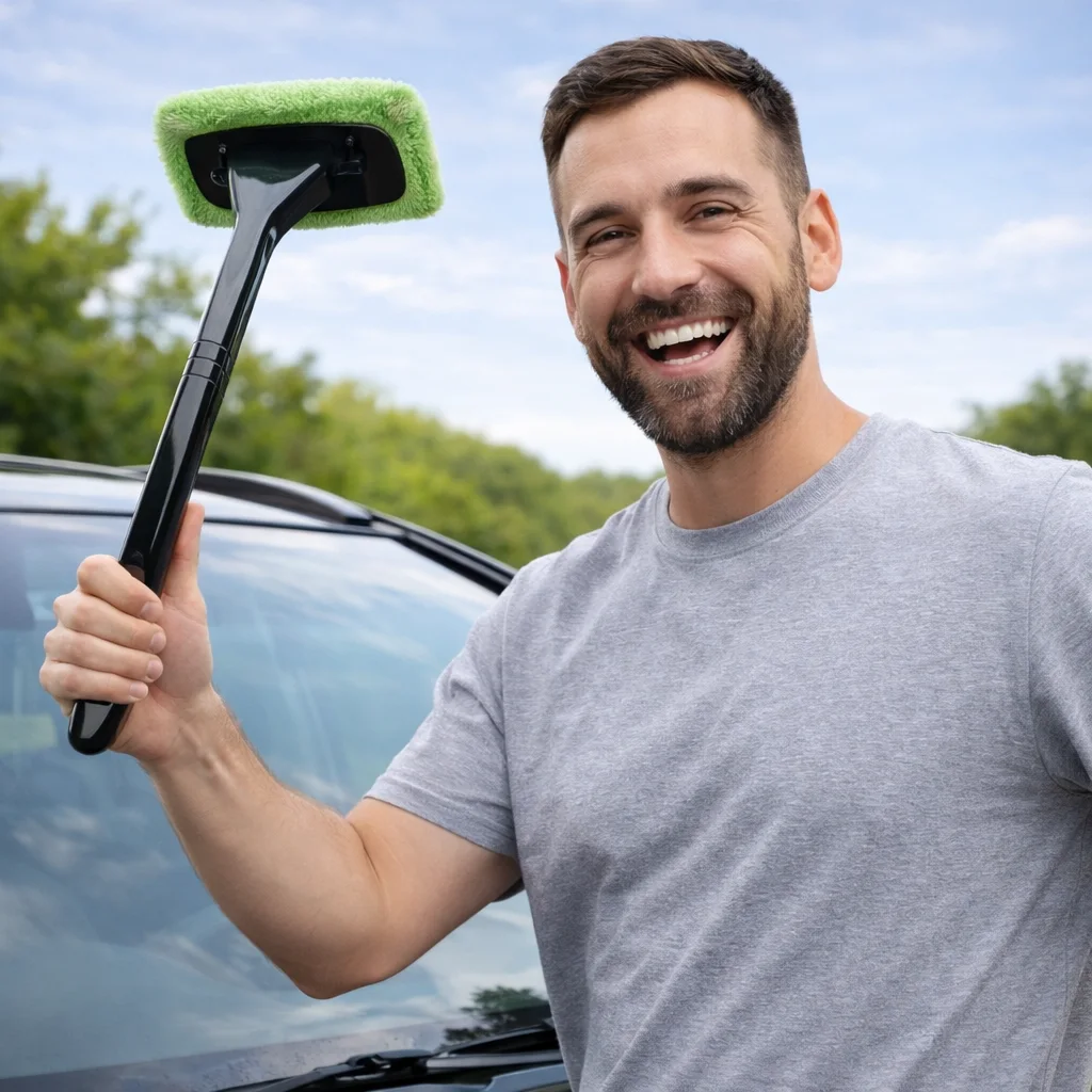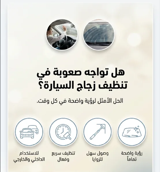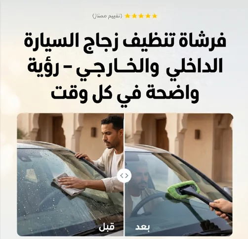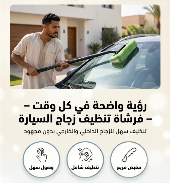 فرشاة تنظيف زجاج السيارة الداخلية بذراع طويل